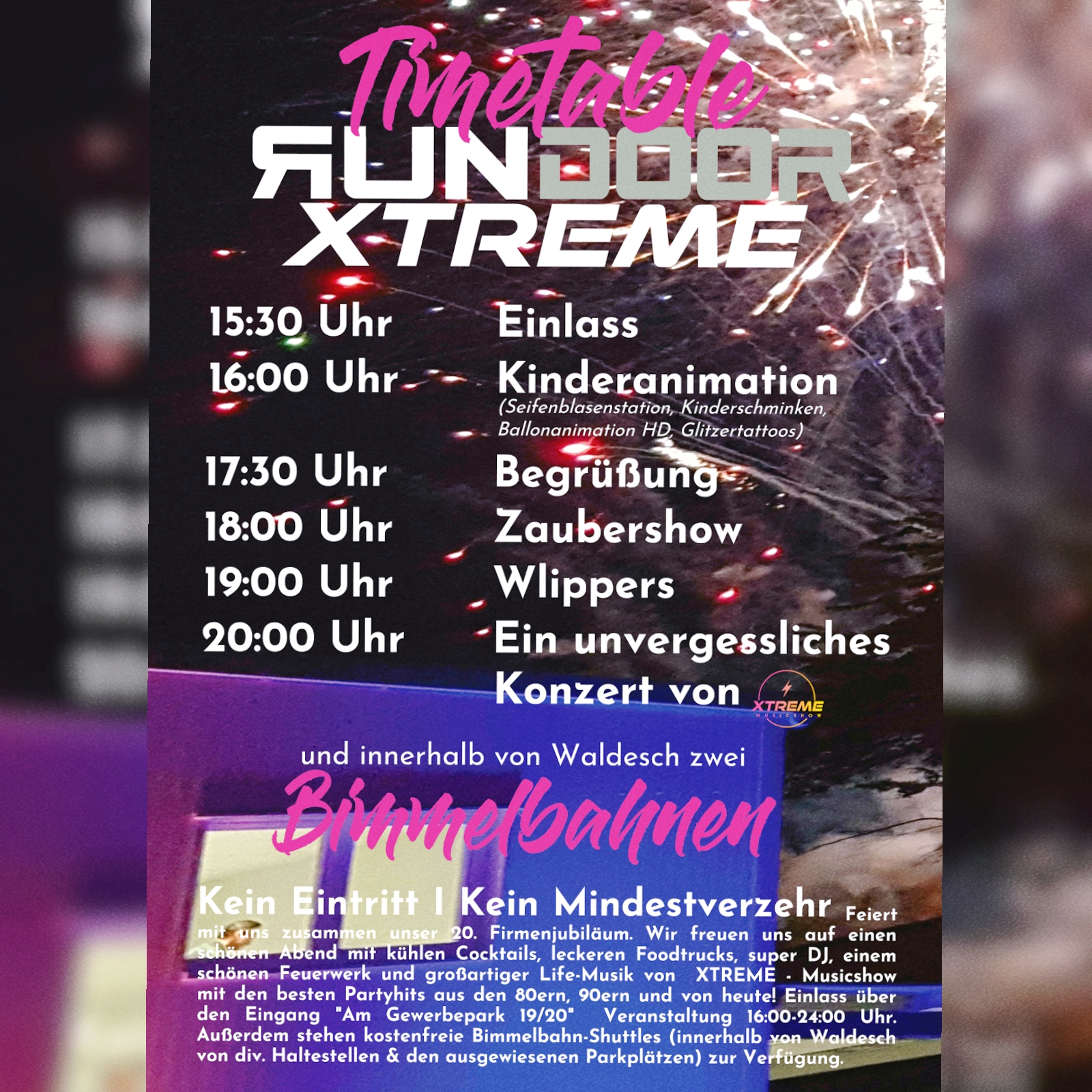 Für euch stehen zwei Bimmelbahn-Shuttles bereit, die euch innerhalb von Waldesch kostenfrei von den Parkplätzen direkt zu unserem Veranstaltungs- und Firmengelände bringen