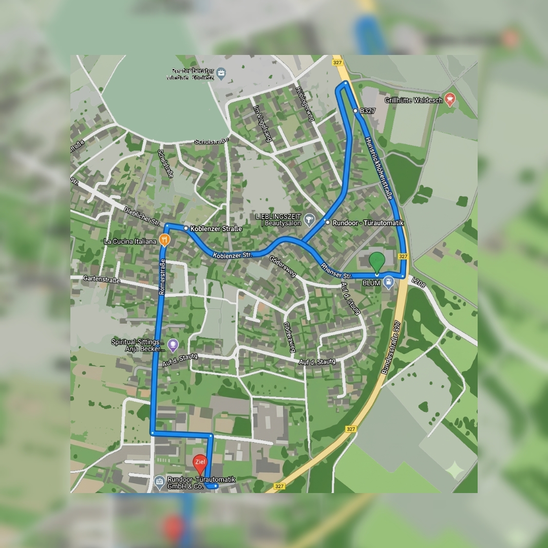 Rundoor - Gemeindehaus - Rundoor Archiv ehe. Schlecker - Bushaltestelle (gegenüber von Norma) - Grundschule - Kirche - Rundoor